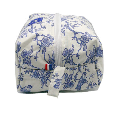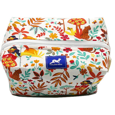 GRANDE TROUSSE AVRIL B à fermeture éclair, extérieur coton à motifs colorés, intérieur waterproof. Lanière de transport ou d’accrochage. Finitions renforcées. Sa grande contenance vous permettra de transporter tous vos accessoires de toilette.