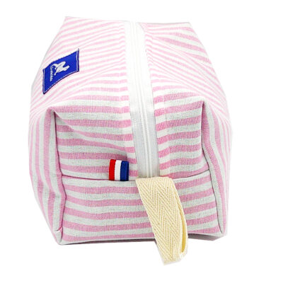 GRANDE TROUSSE MARAINNE à fermeture éclair, extérieur coton à motifs colorés, intérieur waterproof. Lanière de transport ou d’accrochage. Finitions renforcées. Sa grande contenance vous permettra de transporter tous vos accessoires de toilette.