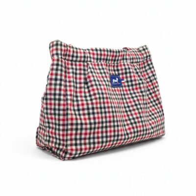 Découvrez le Tote Bag Mini ARNAUD, un sac cabas artisanal en coton à carreaux beiges, bleus, verts et rouge.
