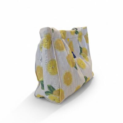 Découvrez le Tote Bag Mini CITRON LIN, un sac cabas artisanal en tissu coton et lin beige orné de citrons.