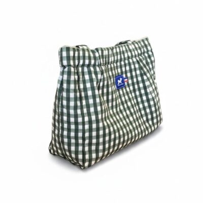 Découvrez le Tote Bag Mini VICHY VERT, un sac cabas artisanal en coton à carreaux blancs et verts.