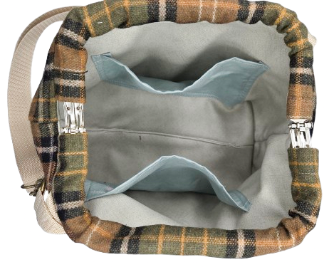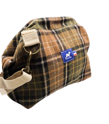 Découvrez le Sac Tutu ANDREW en écossais brun et vert, une création artisanale inspirée des sacs d’autrefois, revisitée avec modernité et légèreté.